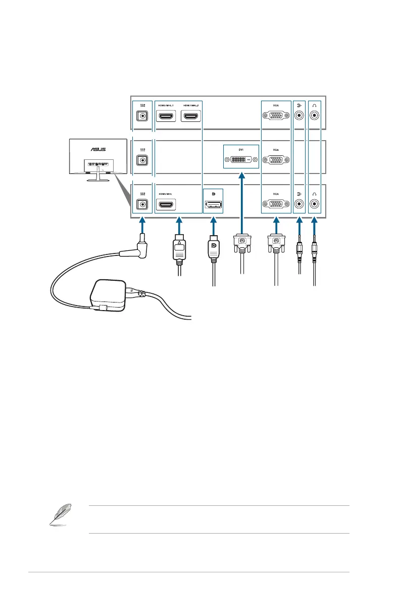 a. Plug one end of the VGA/DVI/HDMI/DisplayPort cable to the monitor’s