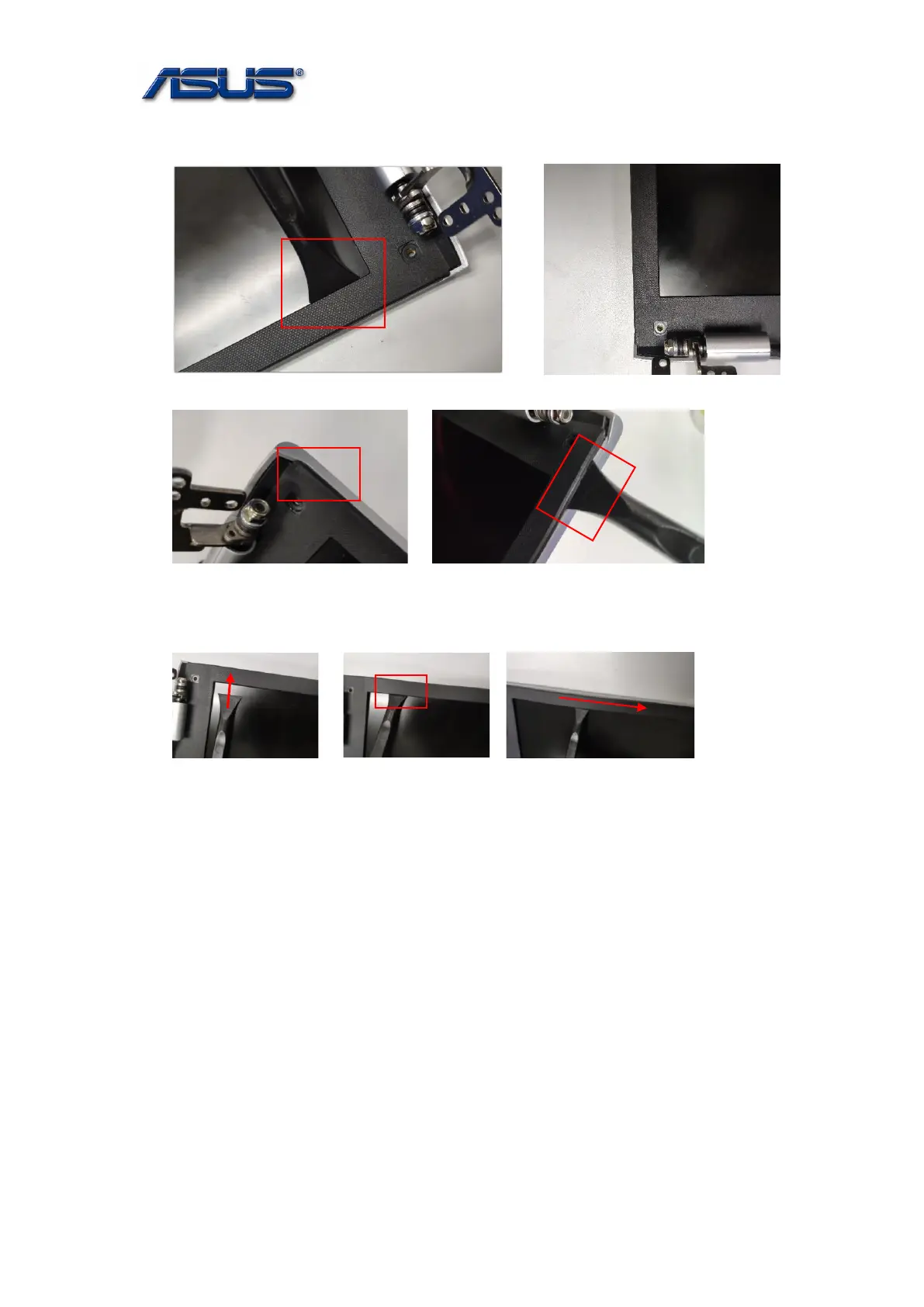 First, Use the thinner plastic blade to pry up the red frame area of outside edge.