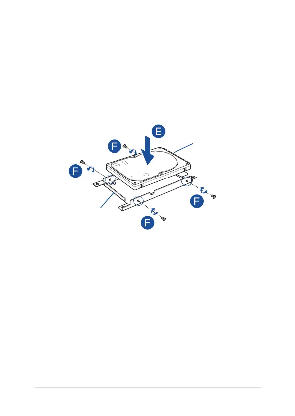 E. Place the new HDD with its PCB (Printed Circuit Board) facing the