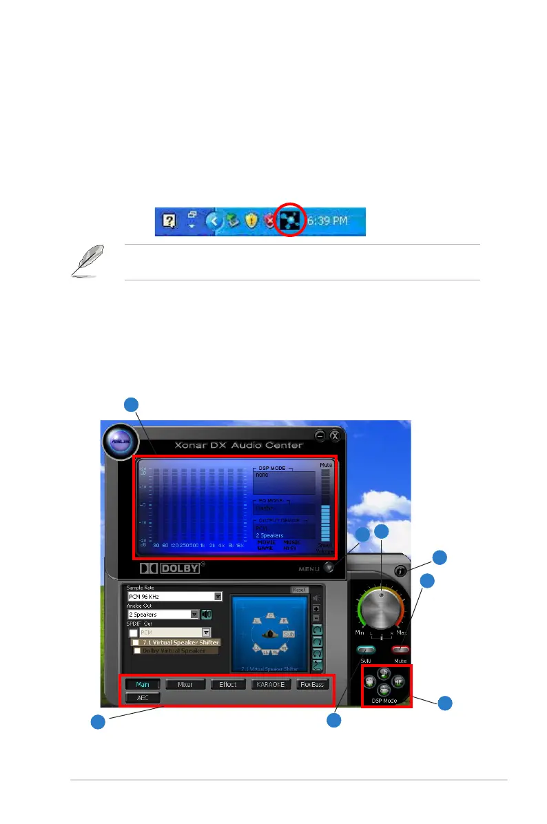 rebooted, you will find the Xonar D1 Audio Center’s icon in the system tray on