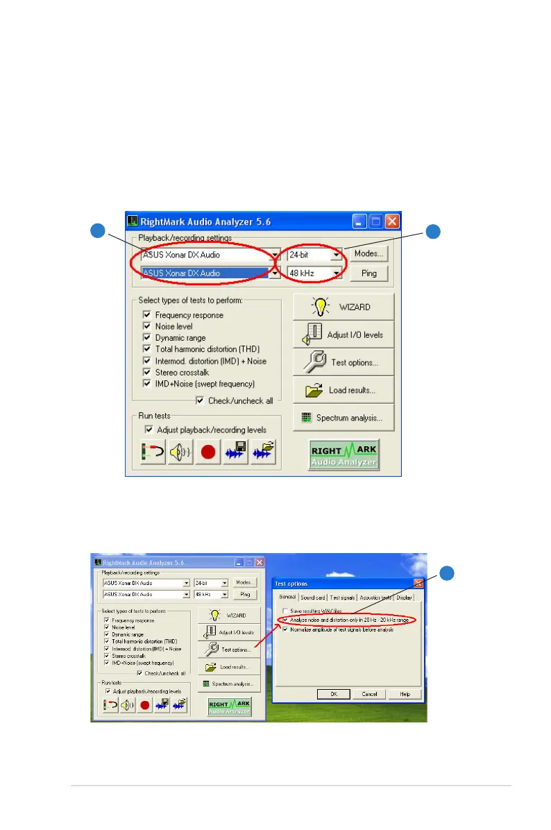 3. Click “Test options” button in RMAA and check “Analyze noise and distortion