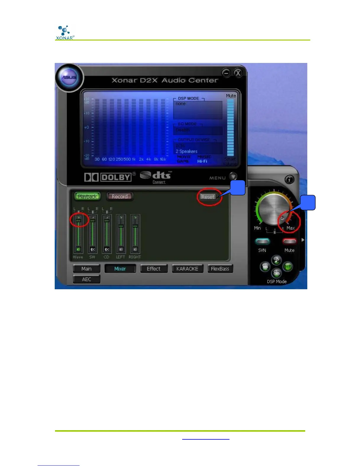 1. Select the playback device as “[DirectSound]ASUS Xonar D2 Audio” (or [MME] ASUS