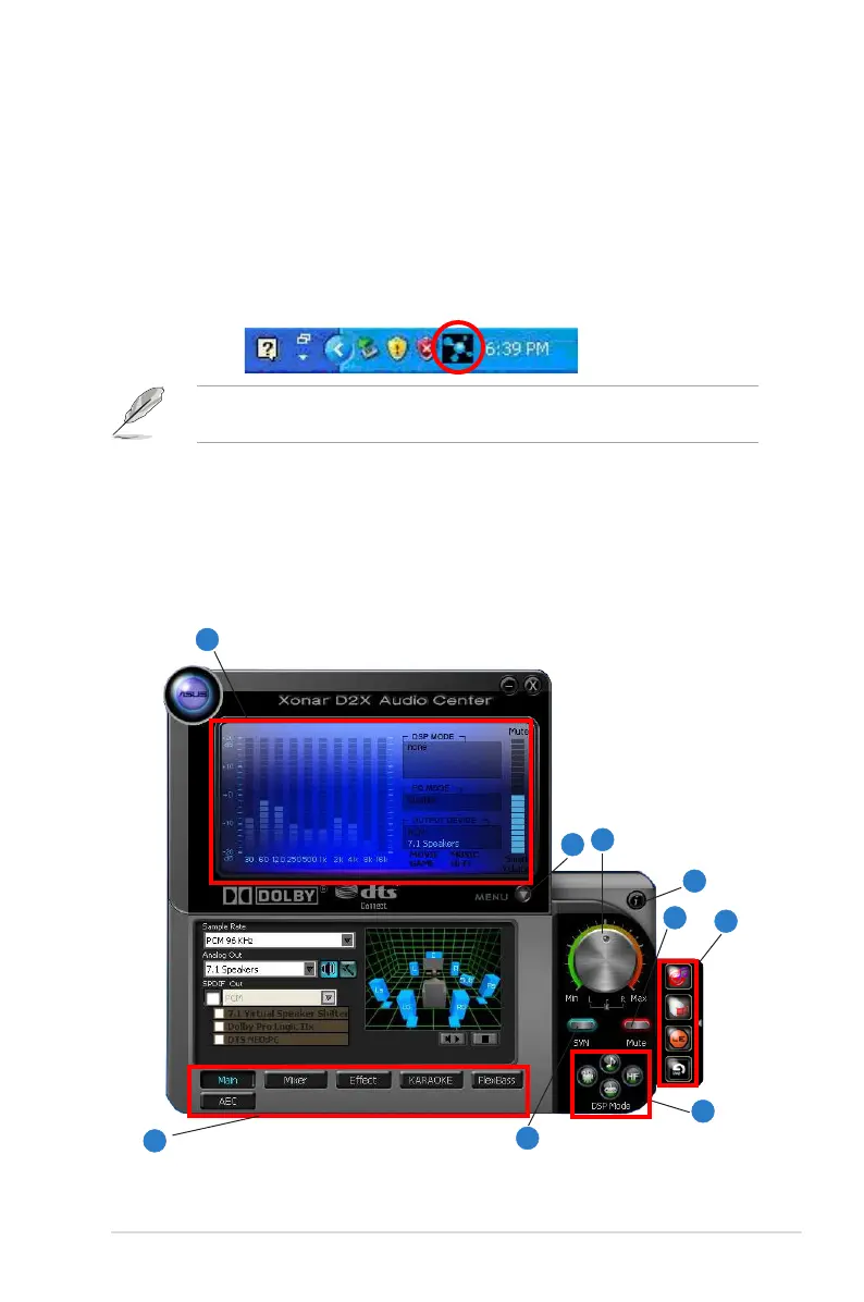 rebooted, you will find the Xonar D2X Audio Center’s icon in the system tray