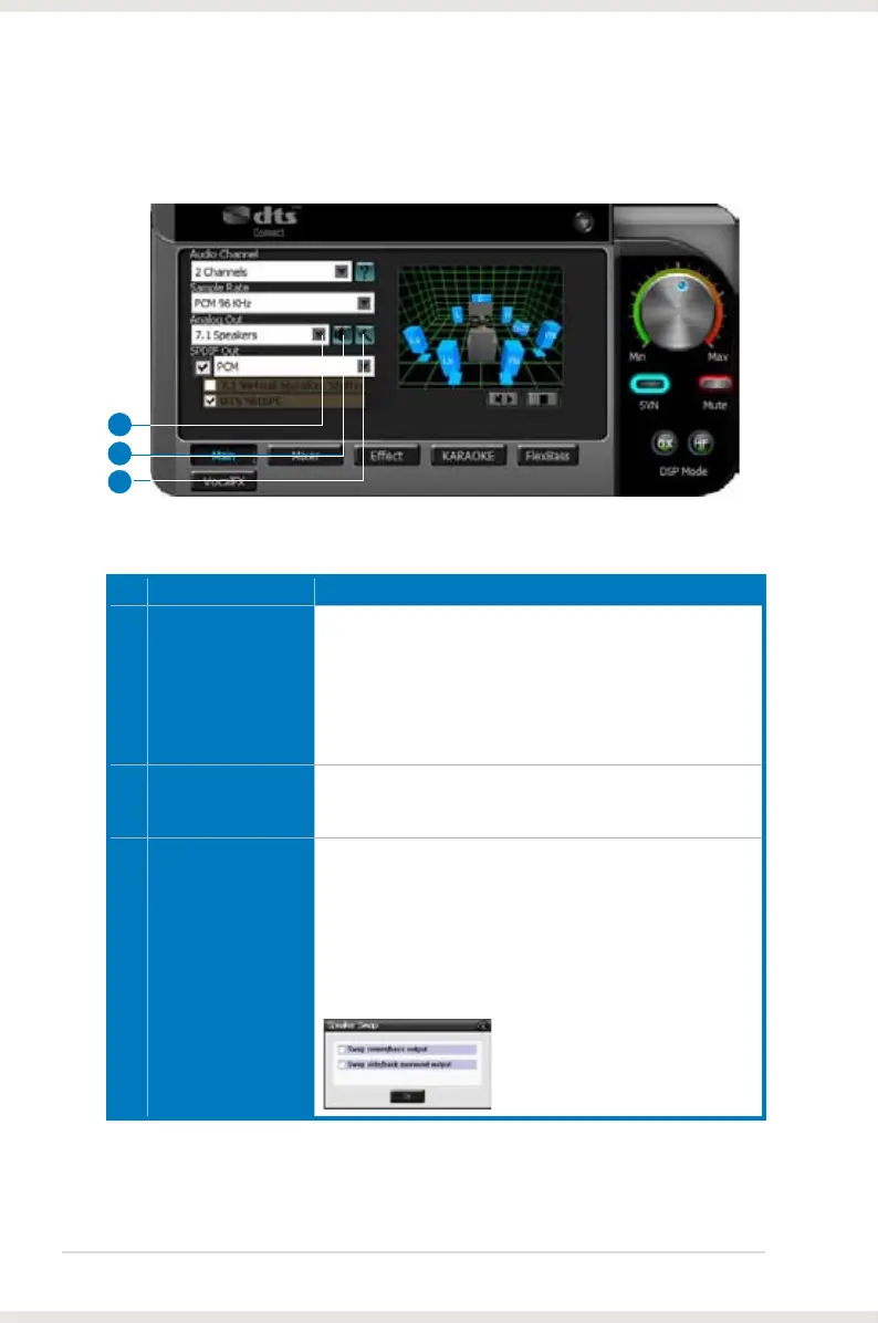 – Swap center/bass outputs for 5.1/7.1-speaker set ups