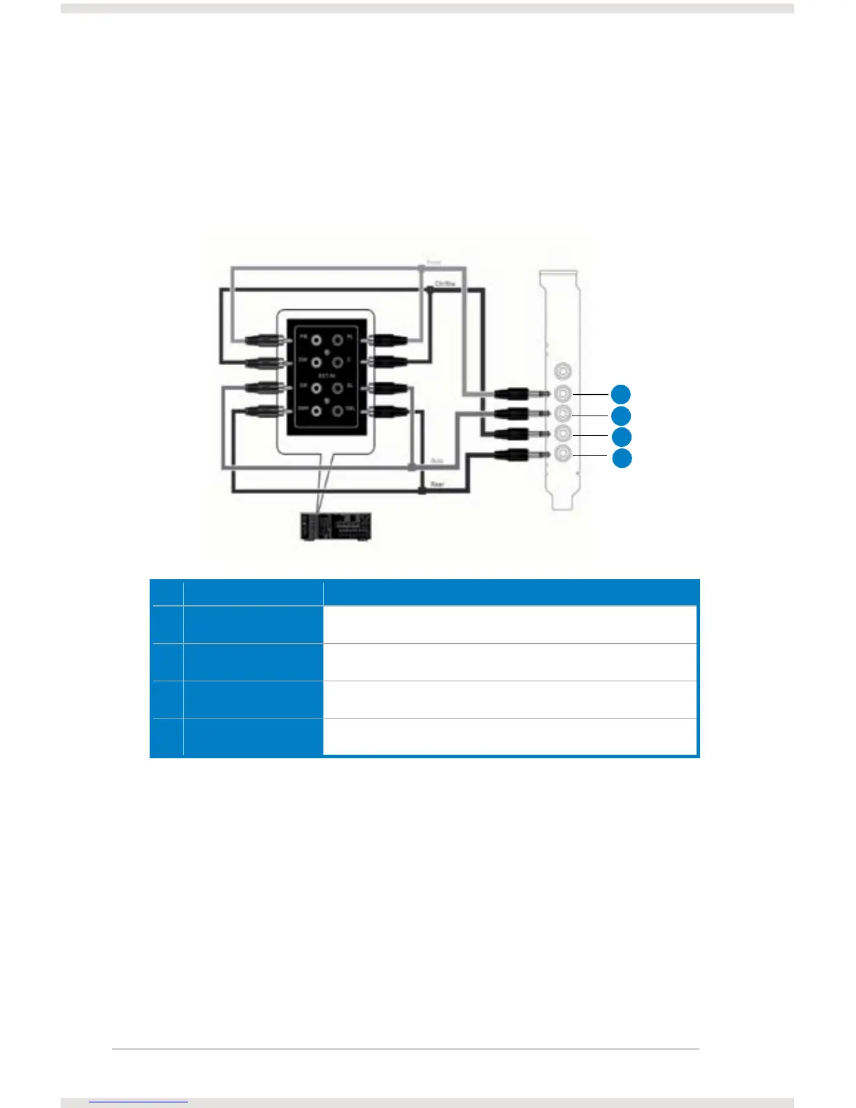 1 Front Out Connects to the “left front” and “right front” input ports of the analog