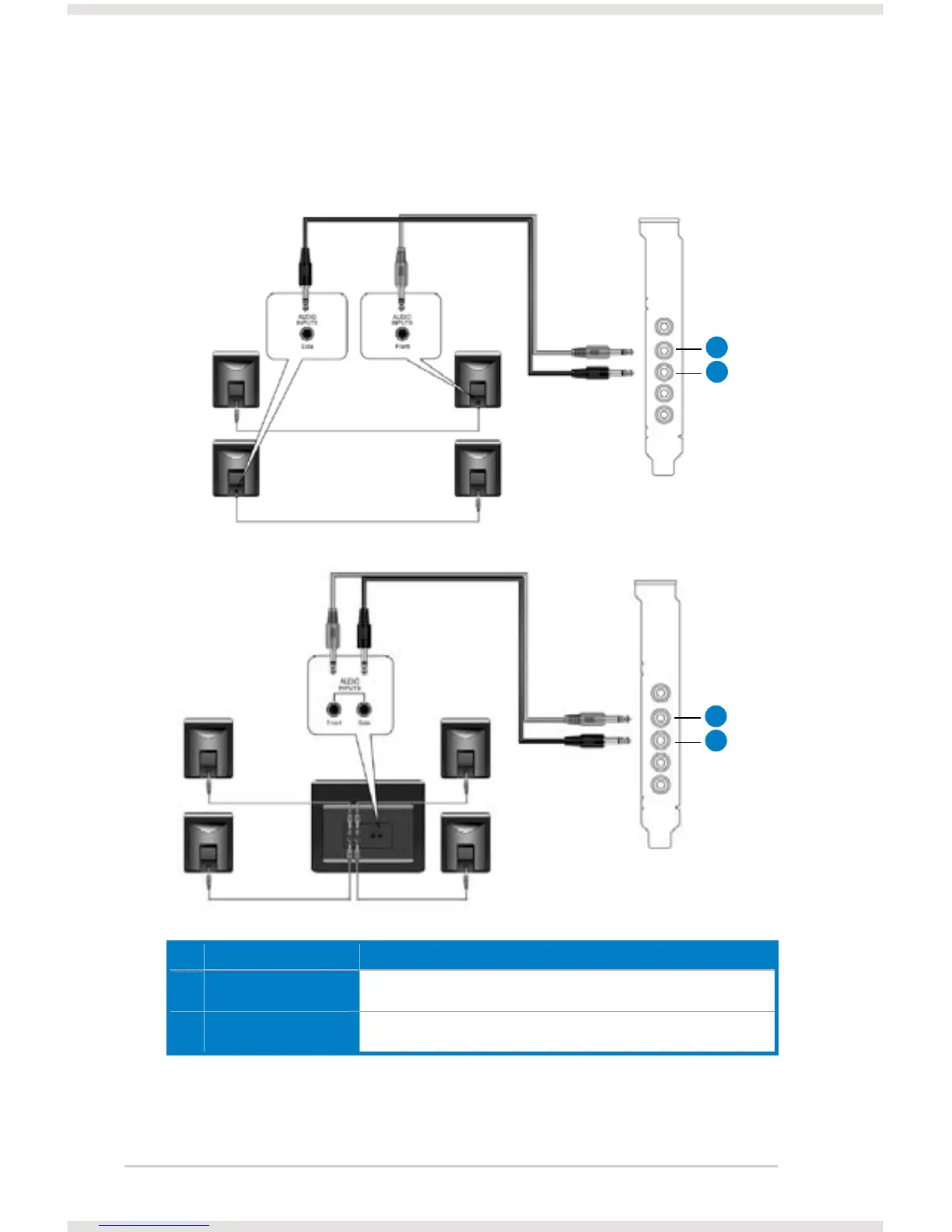 2 Side Surround Out Connects to the Surround input port of the 4/4.1 speakers with the