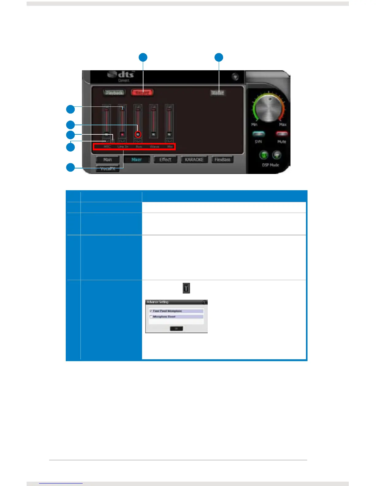 1 Recording Volume Tab Click this button to show the recording volume page.