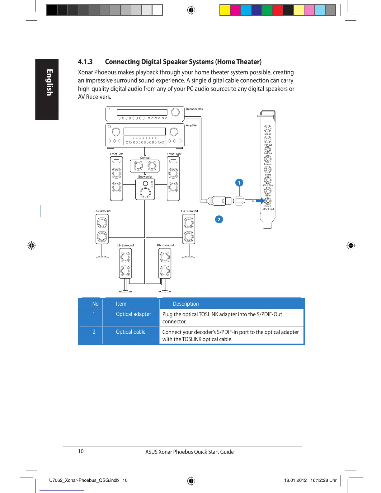 4.1.3 Connecting Digital Speaker Systems (Home Theater)