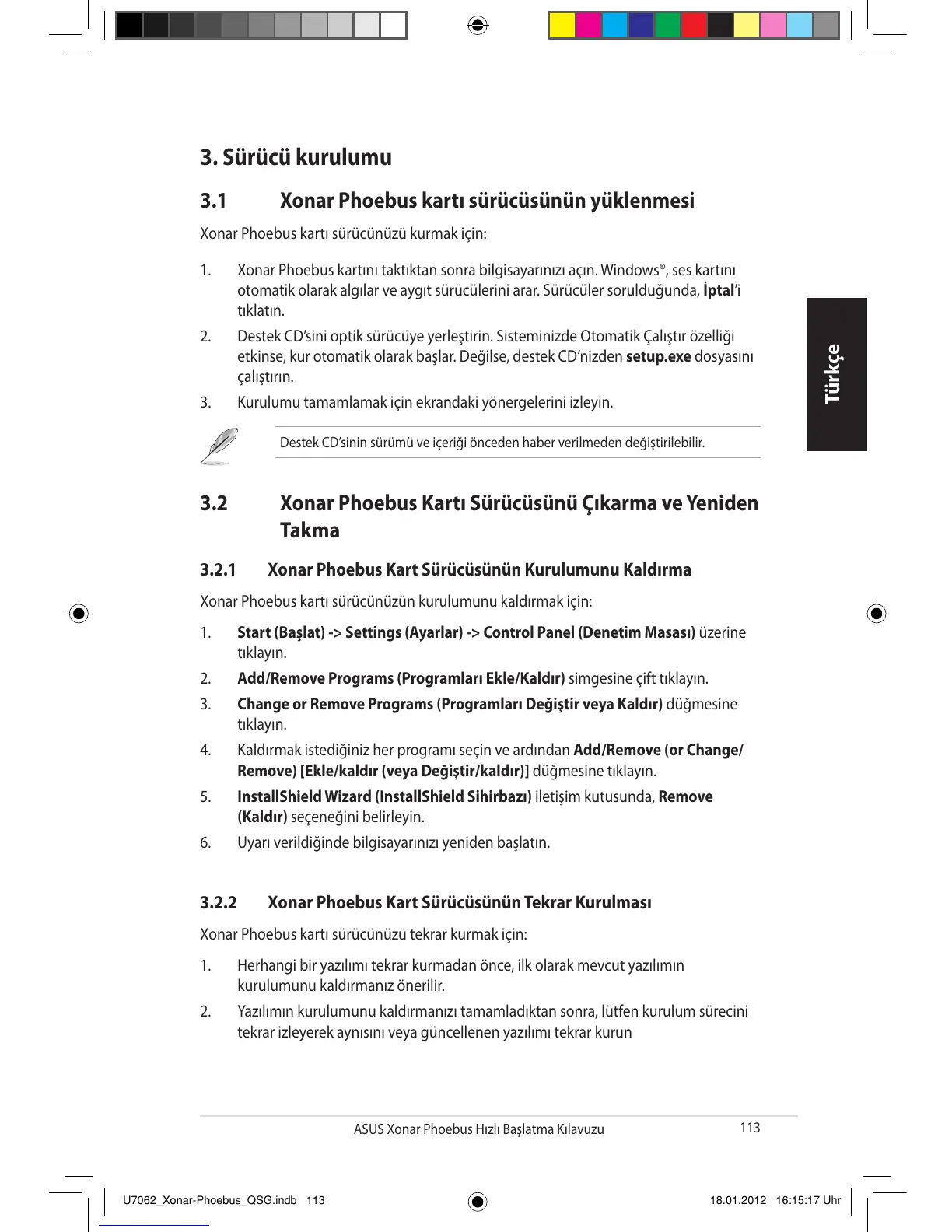 3.2.1 Xonar Phoebus Kart Sürücüsünün Kurulumunu Kaldırma