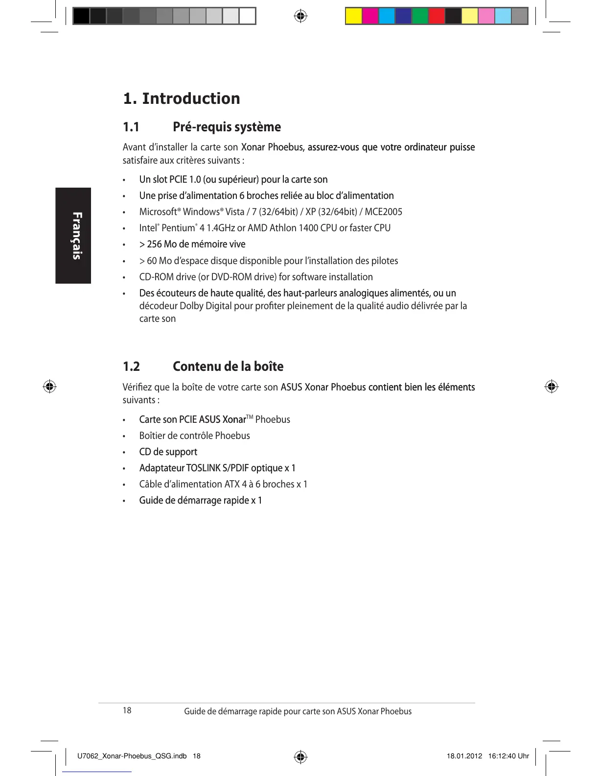 Vériez que la boîte de votre carte son ASUS Xonar Phoebus contient bien les éléments ASUS Xonar Phoebus contient bien les élémentscontient bien les éléments