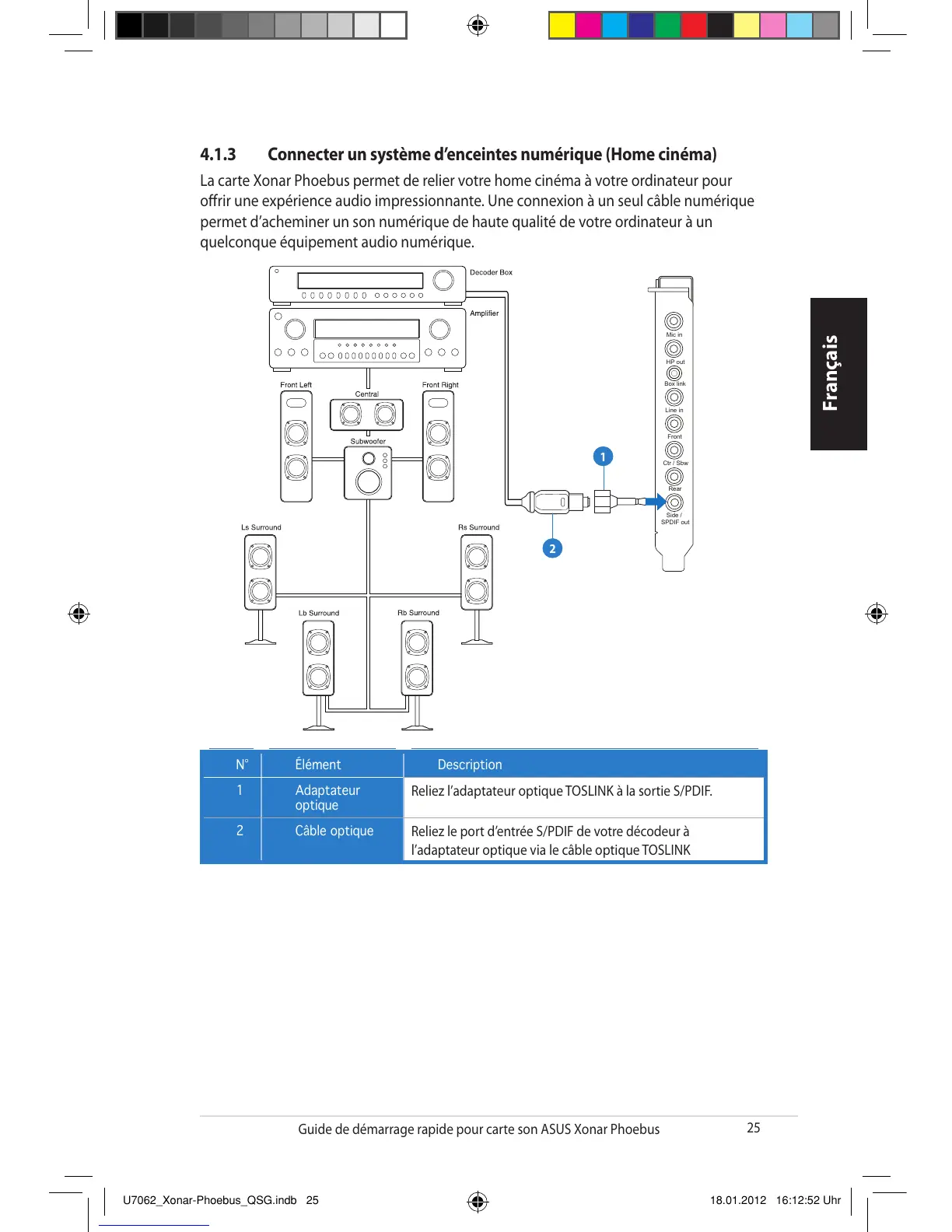 l’adaptateur optique via le câble optique TOSLINK
