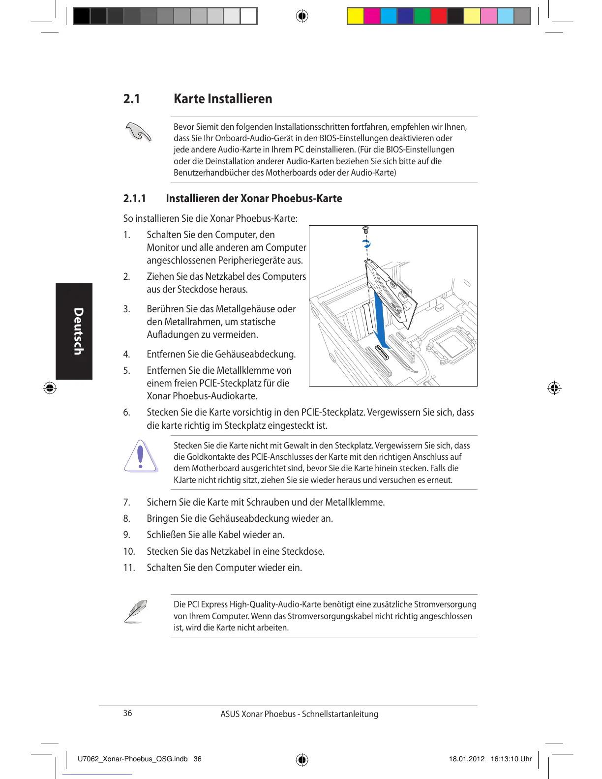 2.1.1 Installieren der Xonar Phoebus-Karte