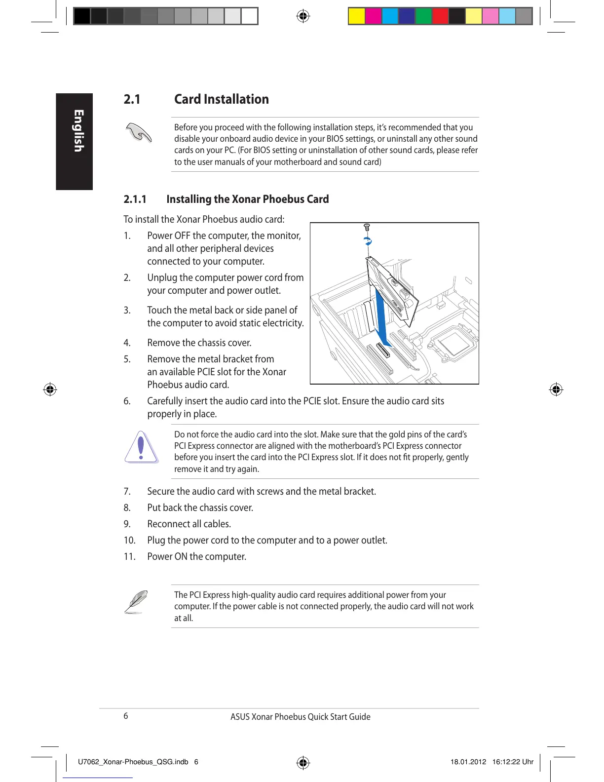 2.1.1 Installing the Xonar Phoebus Card