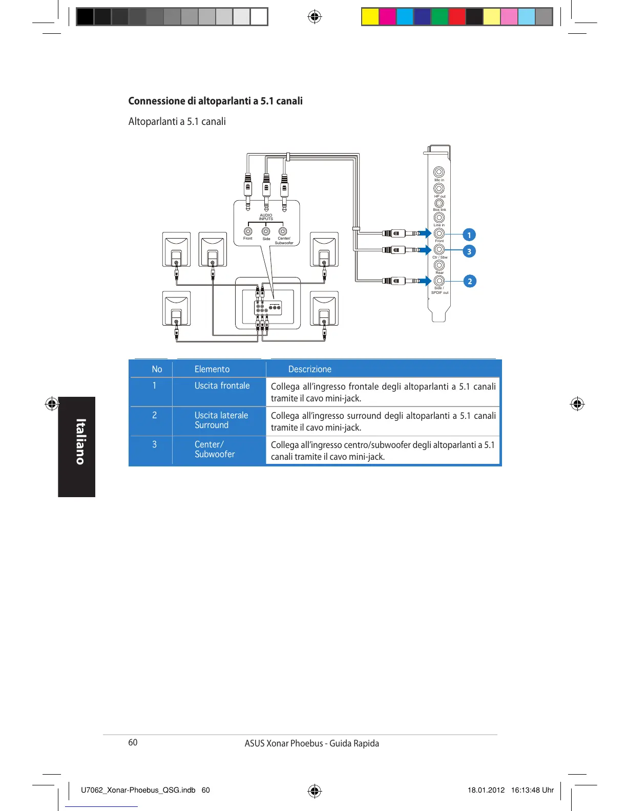 Collega all’ingresso frontale degli altoparlanti a 5.1 canali