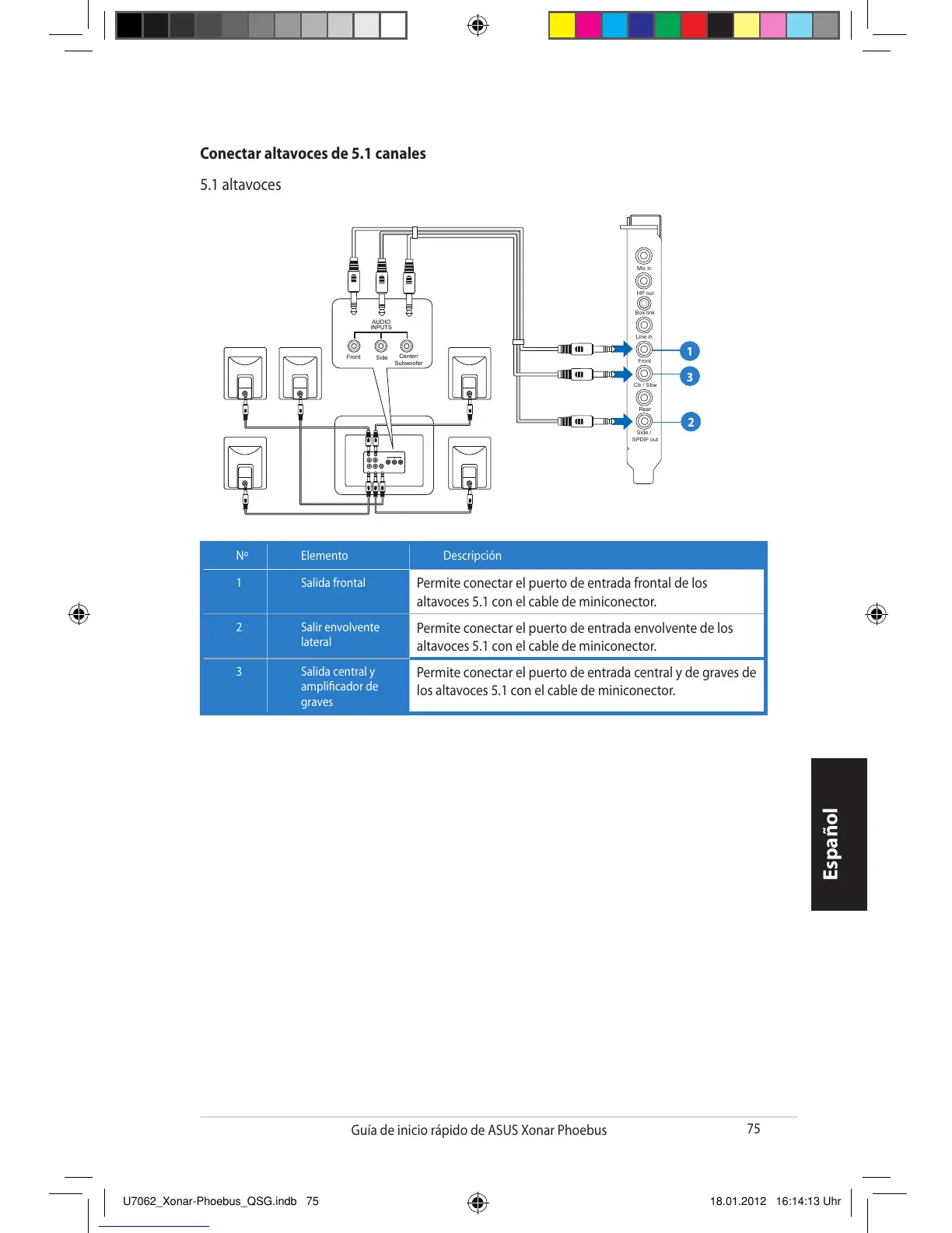 los altavoces 5.1 con el cable de miniconector.