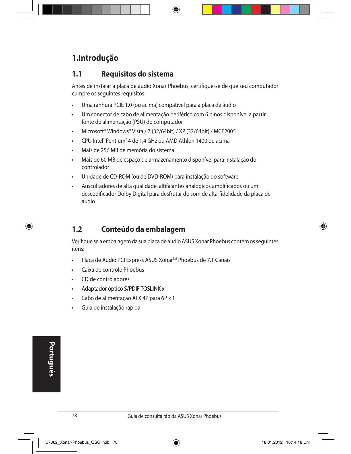 Antes de instalar a placa de áudio Xonar Phoebus, certique-se de que seu computador