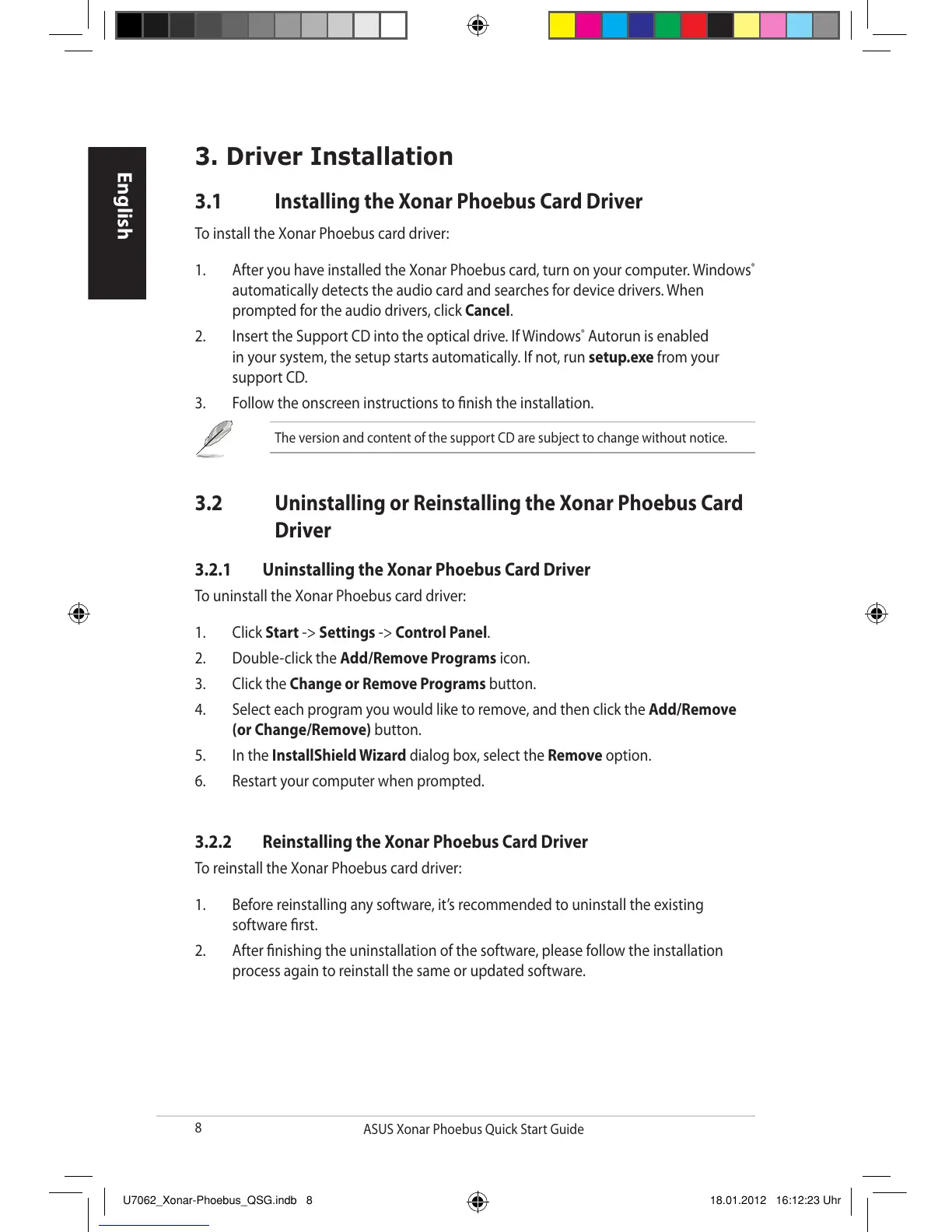 3.2 Uninstalling or Reinstalling the Xonar Phoebus Card