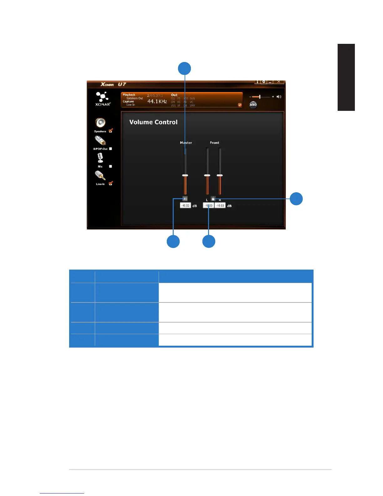 1. Volume Control bar Master – Adjust the volume level for all channels.