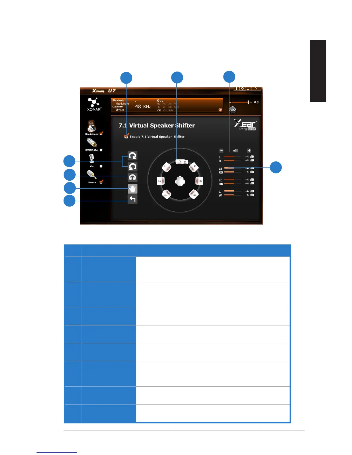 3. Volume Control Each virtual speaker virtualizes one channel of the 7.1