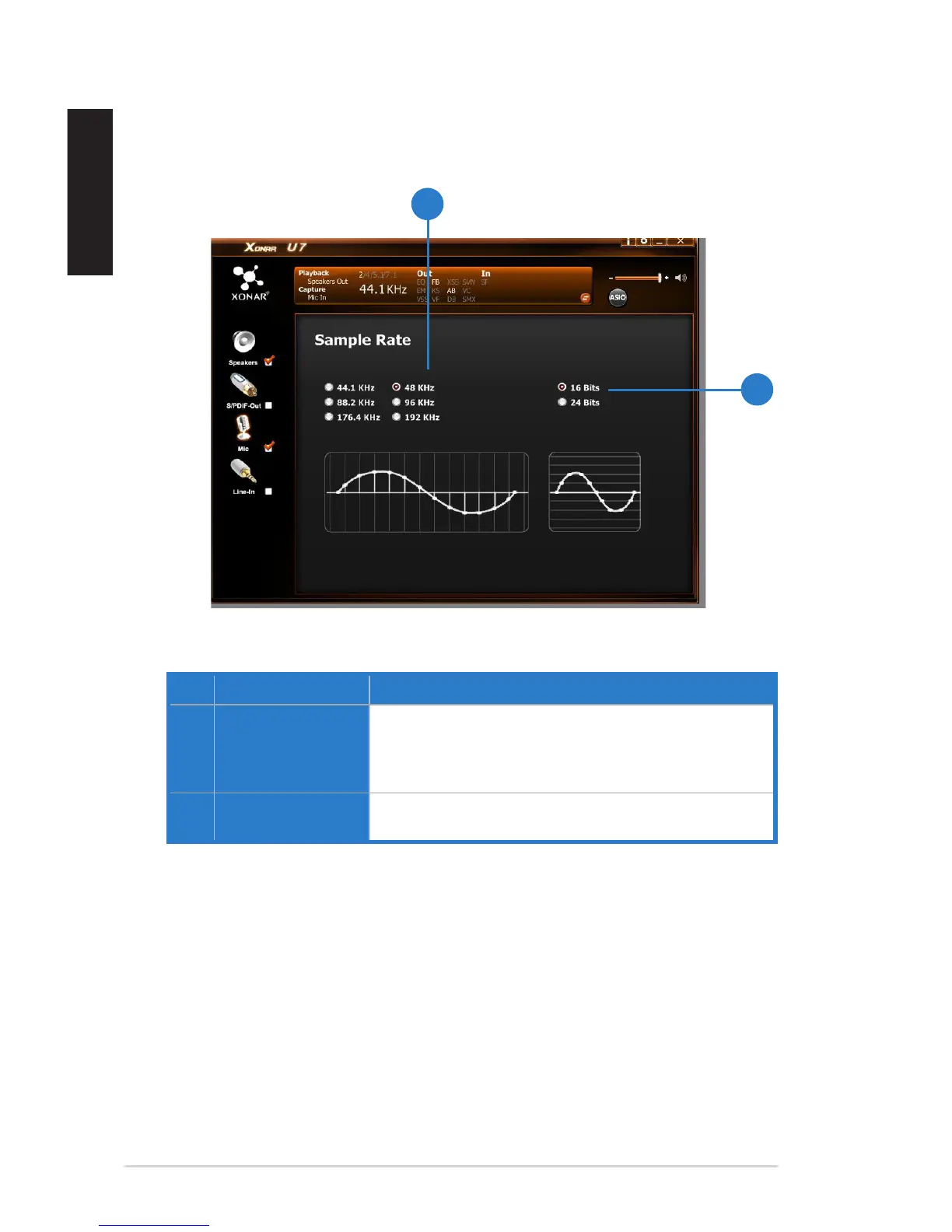 1. Sample Rate button 44.1 KHz - set the playback sample rate to 44.1K