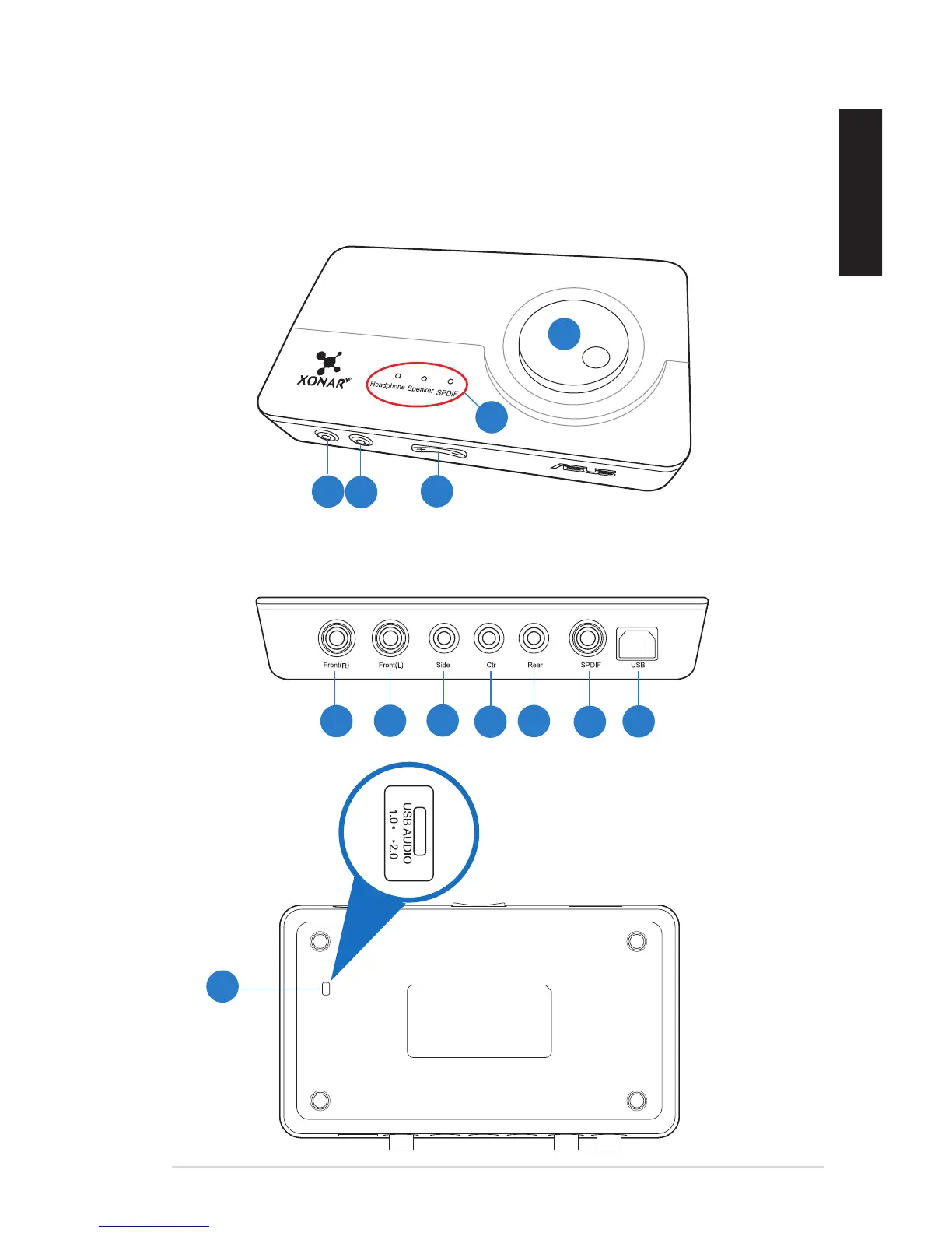 Asus Xonar U7 - 2 Hardware; Xonar U7 Audio Card; Top View; Rear View