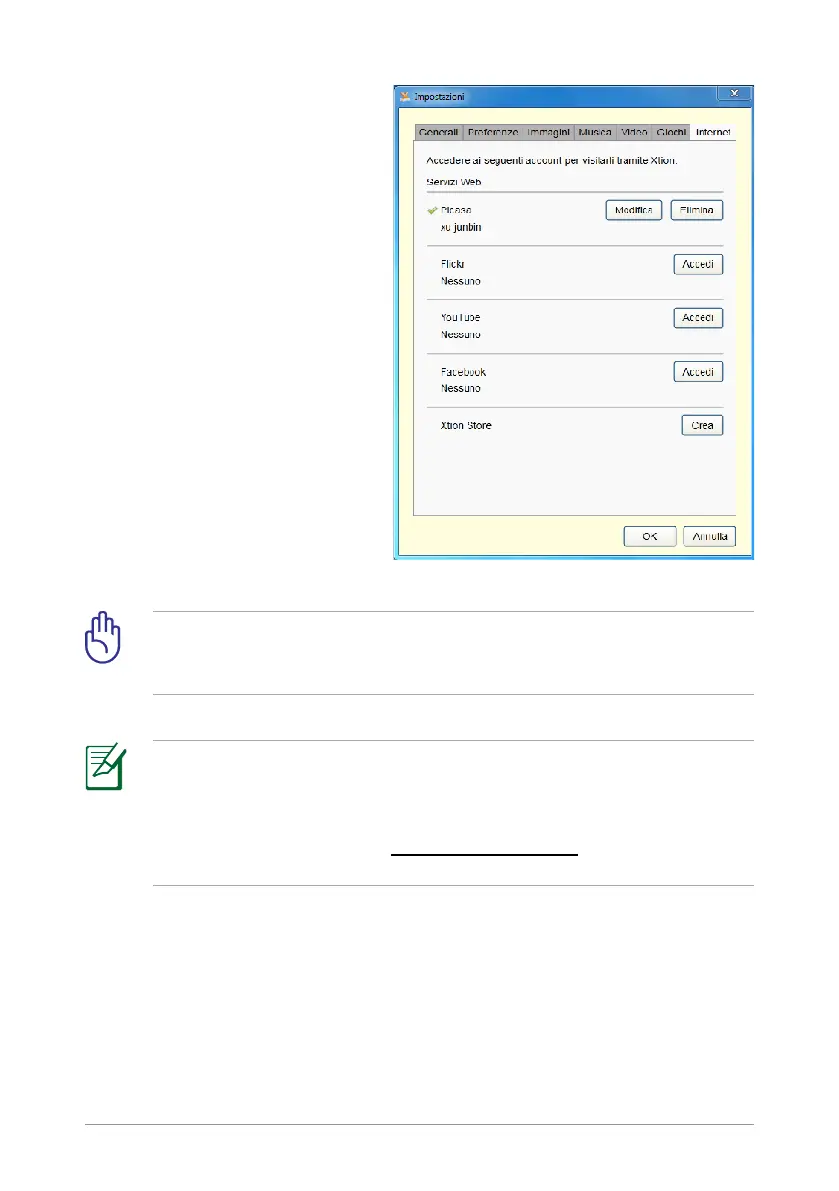 • Per accedere ad applicazioni e videogiochi, registrarsi nel sito ASUS Xtion