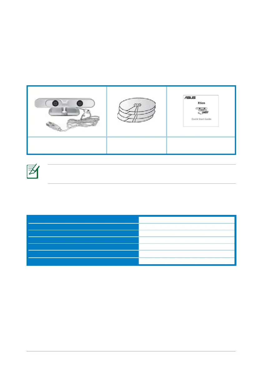 Asus Xtion - パッケージの内容; ASUS Xtion の仕様一覧