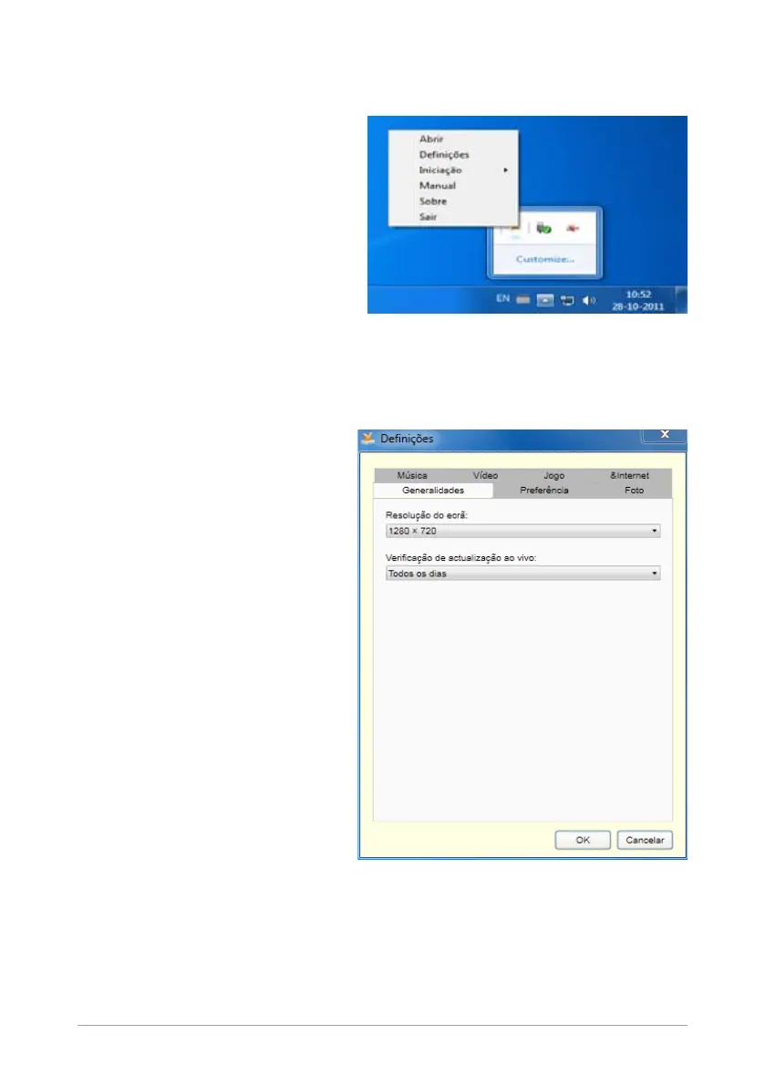 2. Clique em cada separador no ecrã Settings (Denições) para exibir os