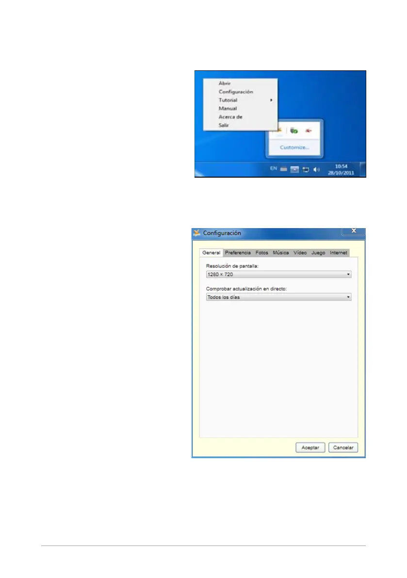 2. Haga clic en cada cha de la pantalla Settings (Conguración) para