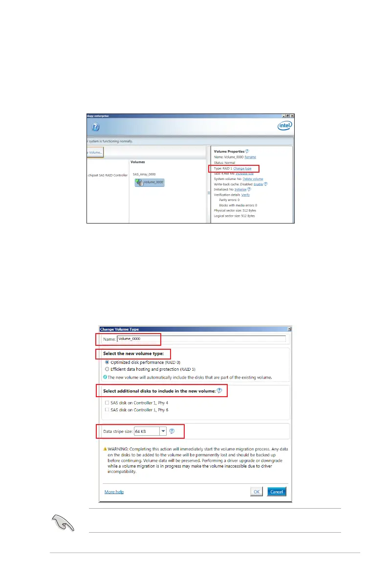 2 From the Volume Properties eld, select Type:RAID 1 Change type.
