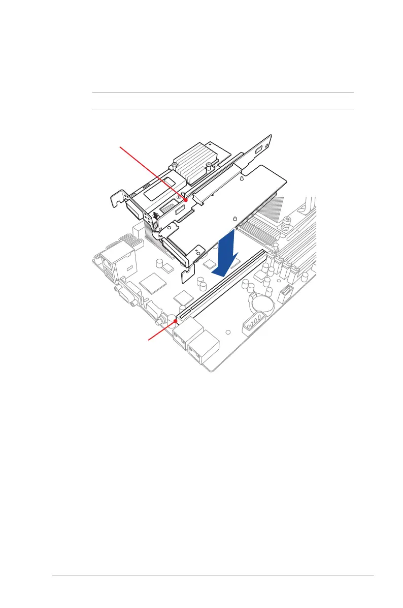 4. AlignandinserttherisercardandexpansioncardassemblyintothePCI-Eslotonthe