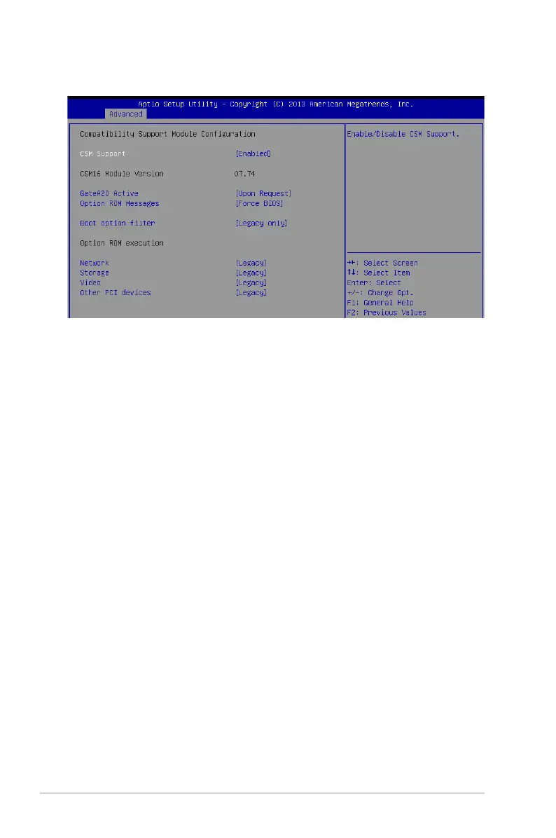This option allows you to enable or disable CSM Support.