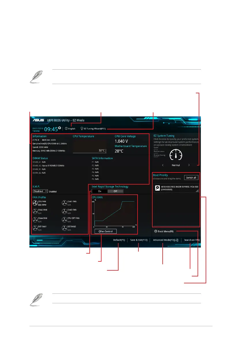 By default, the EZ Mode screen appears when you enter the BIOS setup program. The EZ