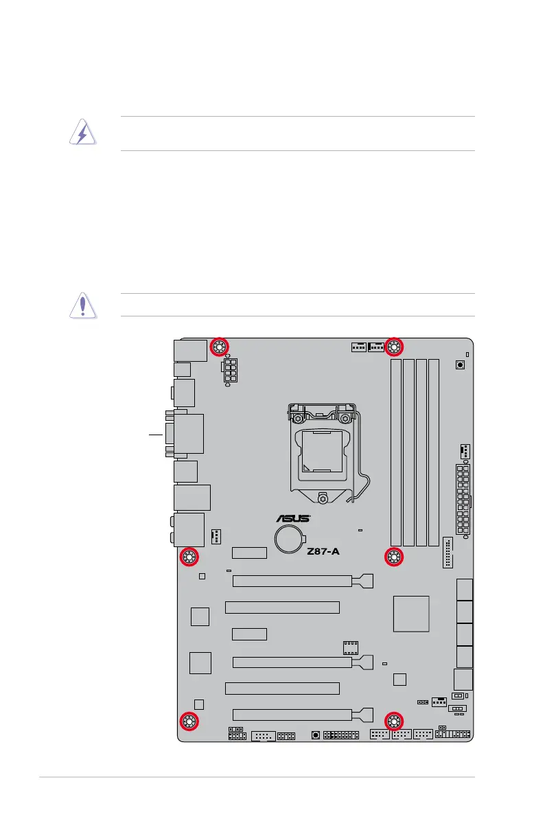 Do not overtighten the screws! Doing so can damage the motherboard.
