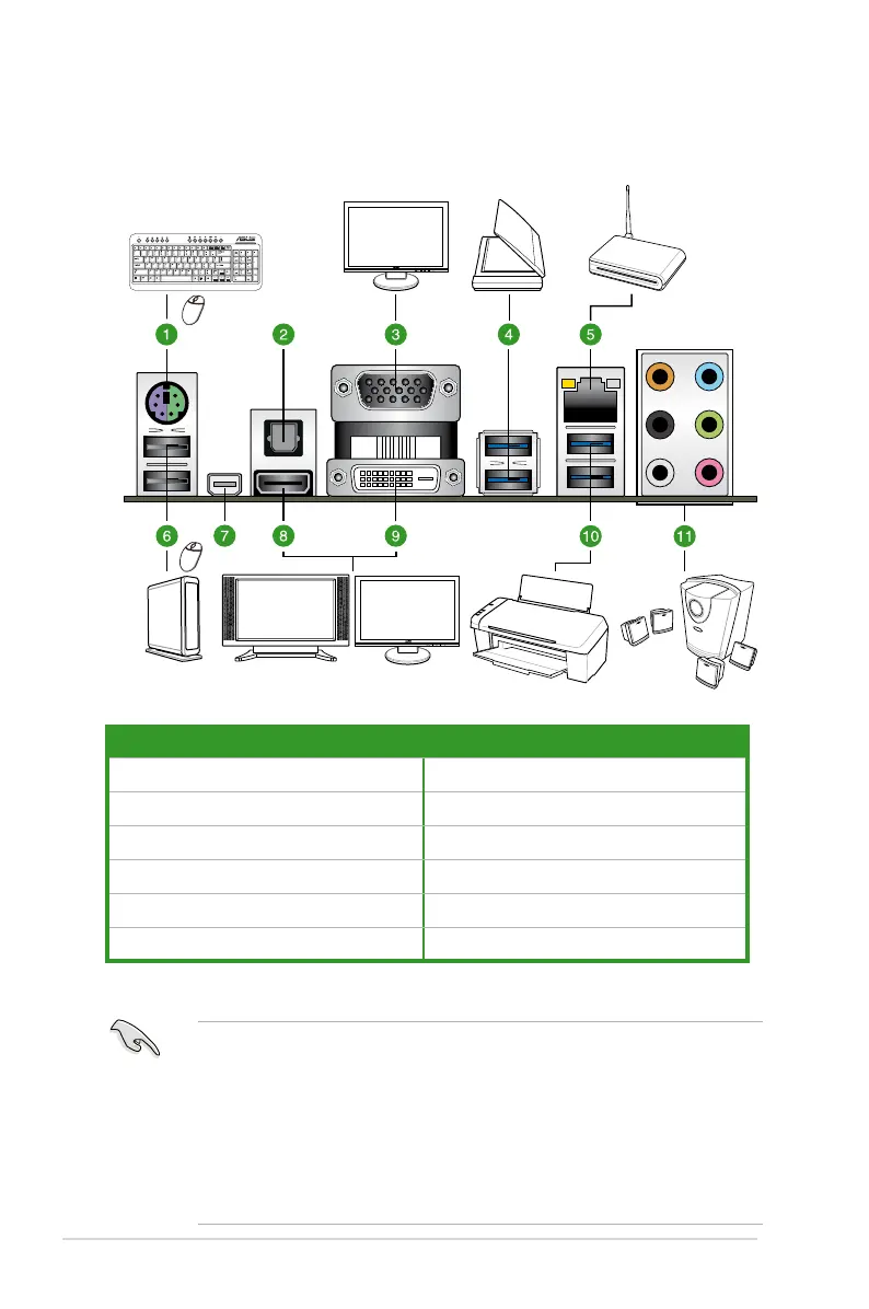 1. PS/2 keyboard/mouse combo port 7. Mini DisplayPort