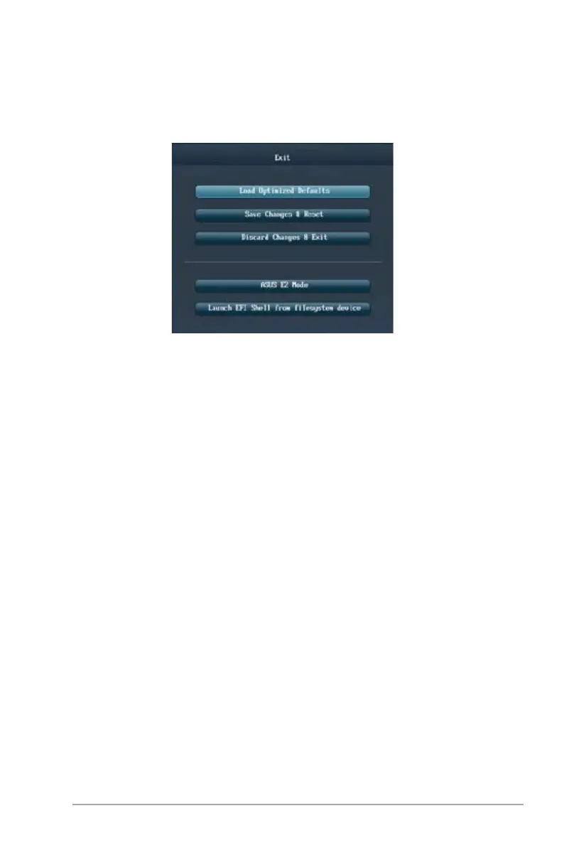 Die Elemente im Exit-Menü gestatten Ihnen, die optimalen Standardwerte für die BIOS-