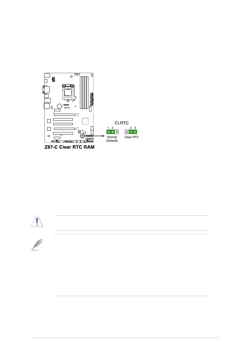 Except when clearing the RTC RAM, never remove the cap on CLRTC jumper default