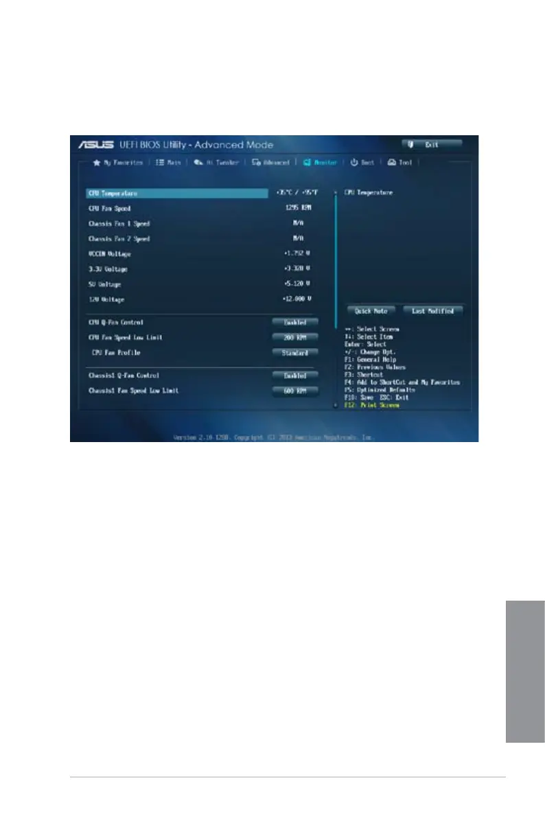 The onboard hardware monitor automatically detects and displays the CPU temperature.