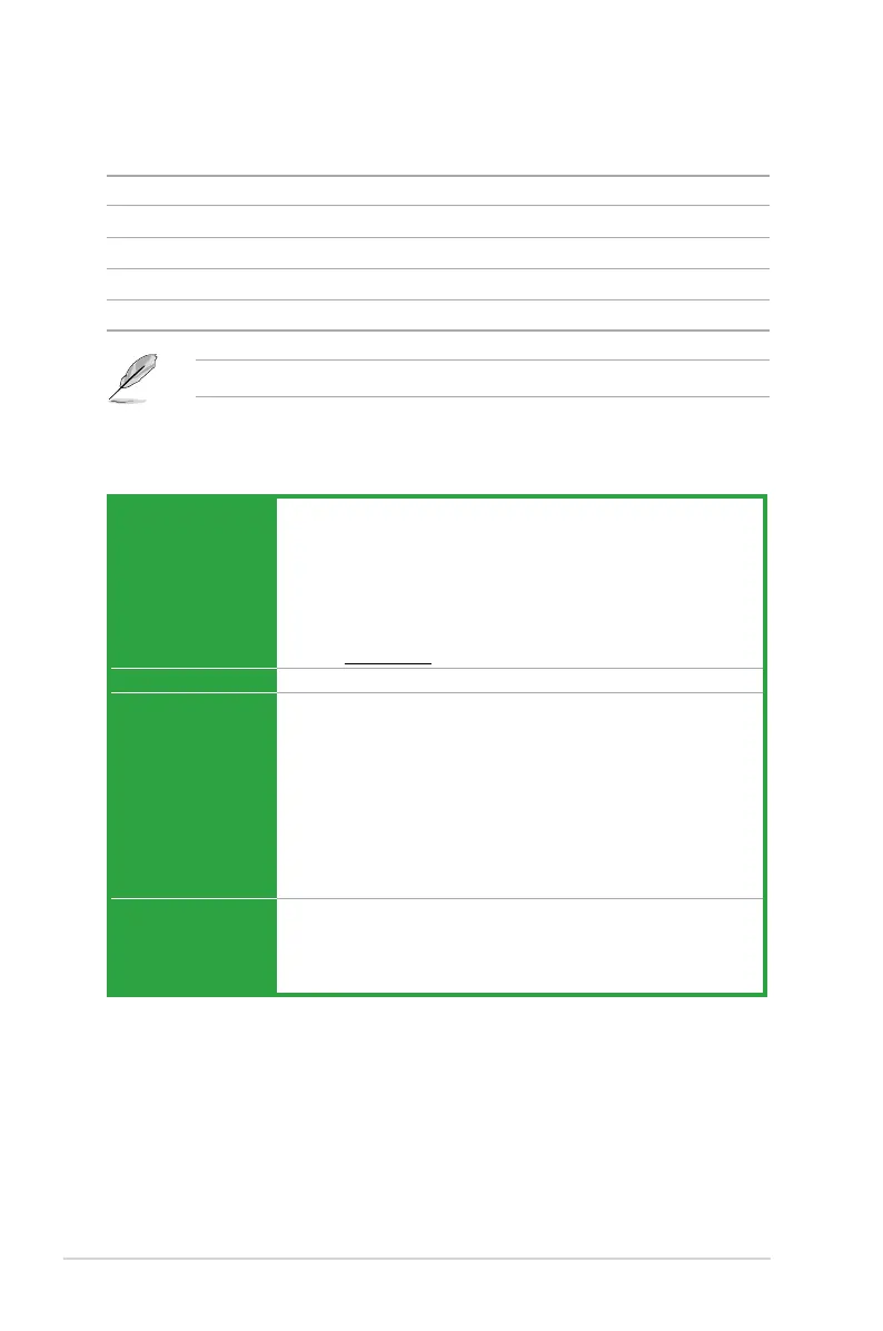 ** Refer to www.asus.com for the Memory QVL (Qualified Vendors List).