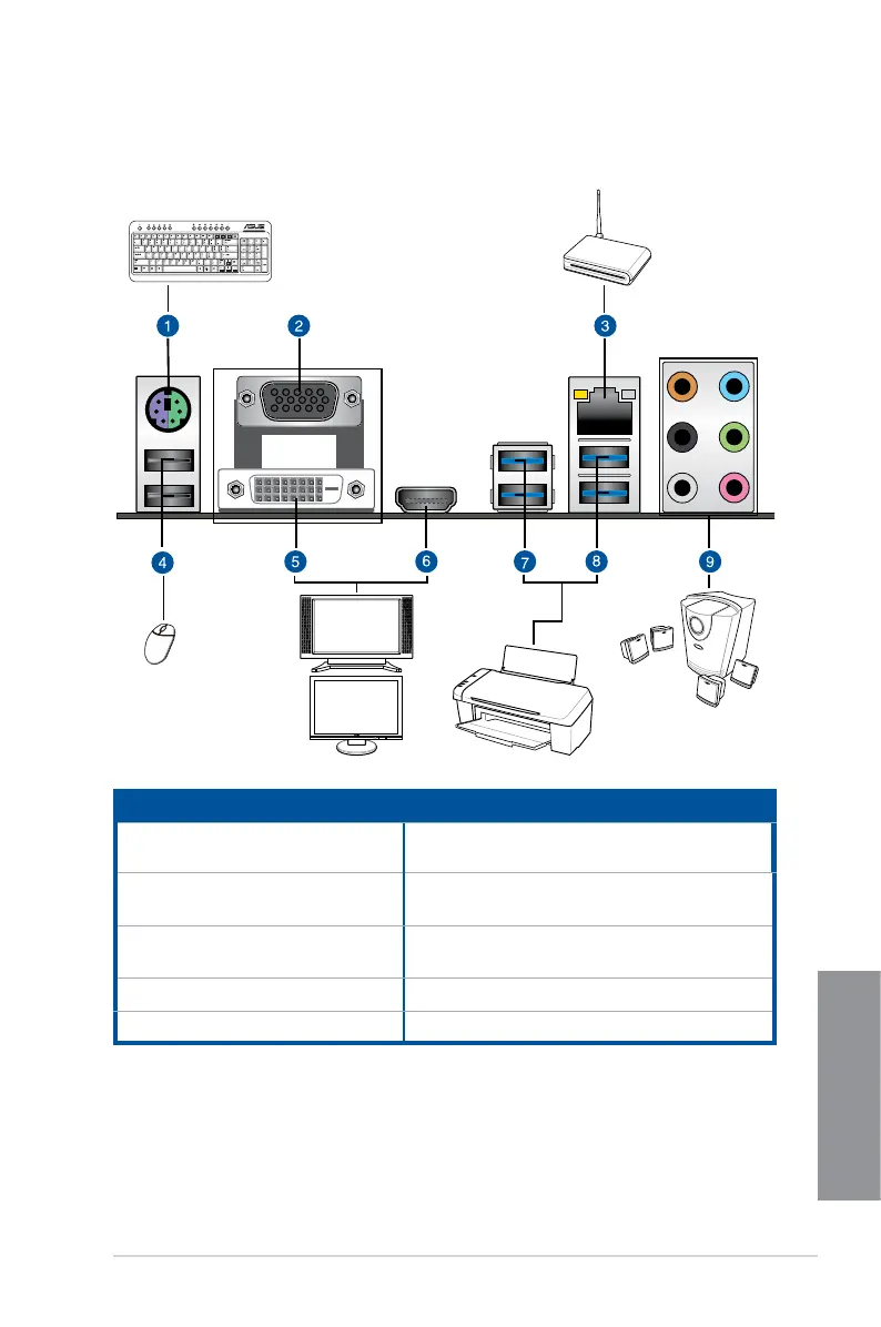 4. USB 2.0 ports 7 and 8 9. Audio I/O ports**