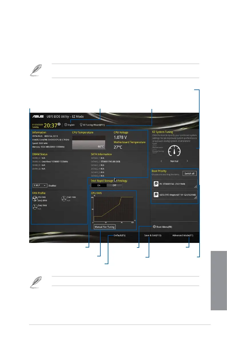By default, the EZ Mode screen appears when you enter the BIOS setup program. The EZ