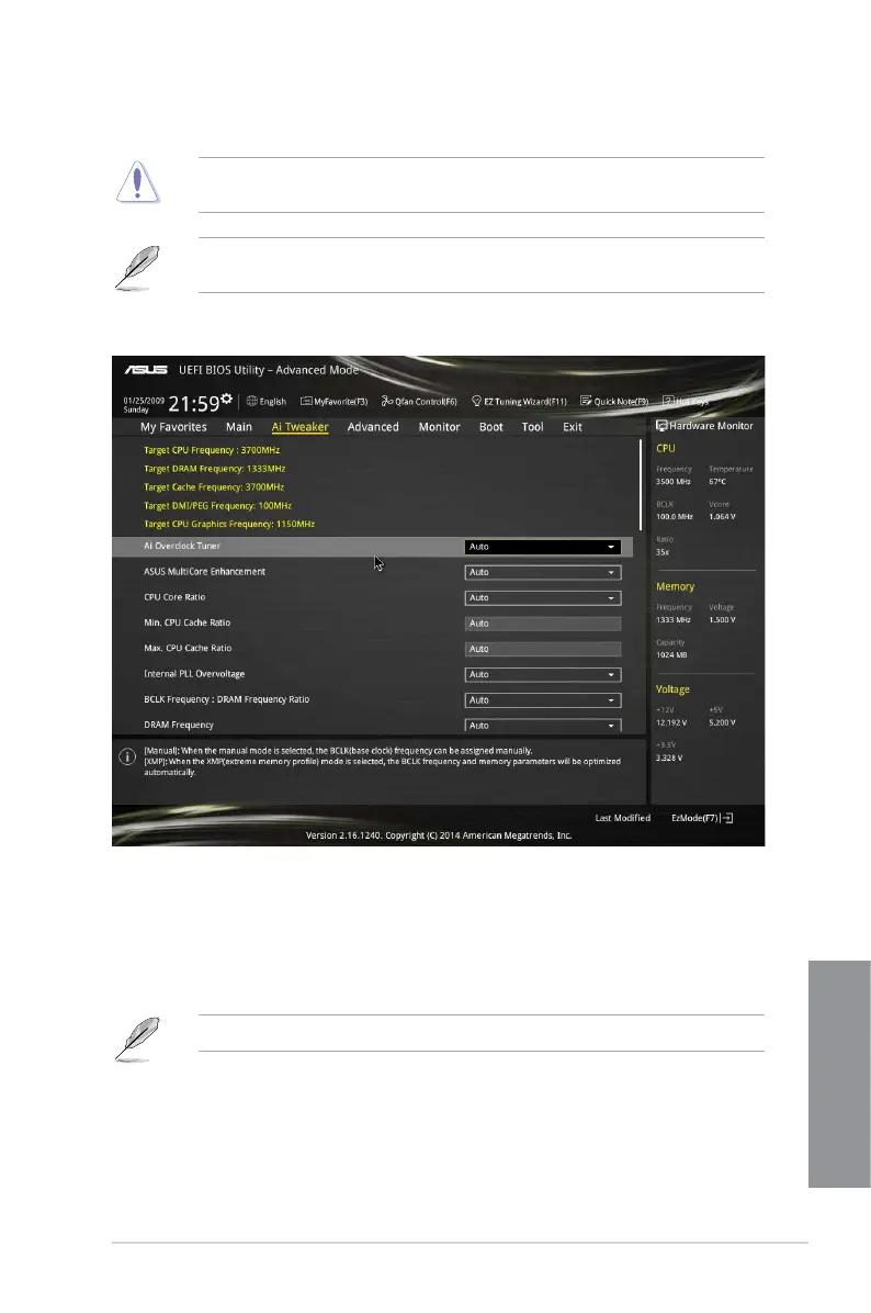 Be cautious when changing the settings of the Ai Tweaker menu items. Incorrect eld