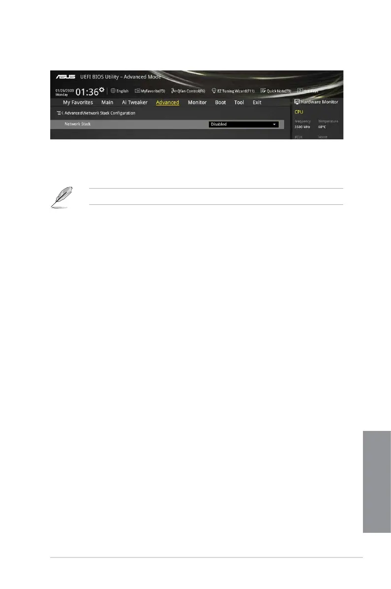 This item allows you to disable or enable the UEFI network stack. Conguration options: