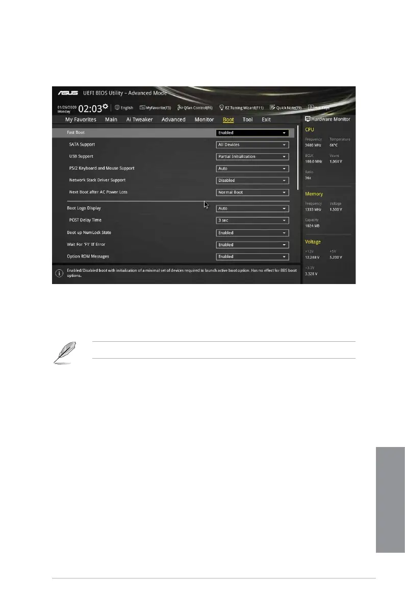 The following items appear only when you set the Fast Boot to [Enabled].