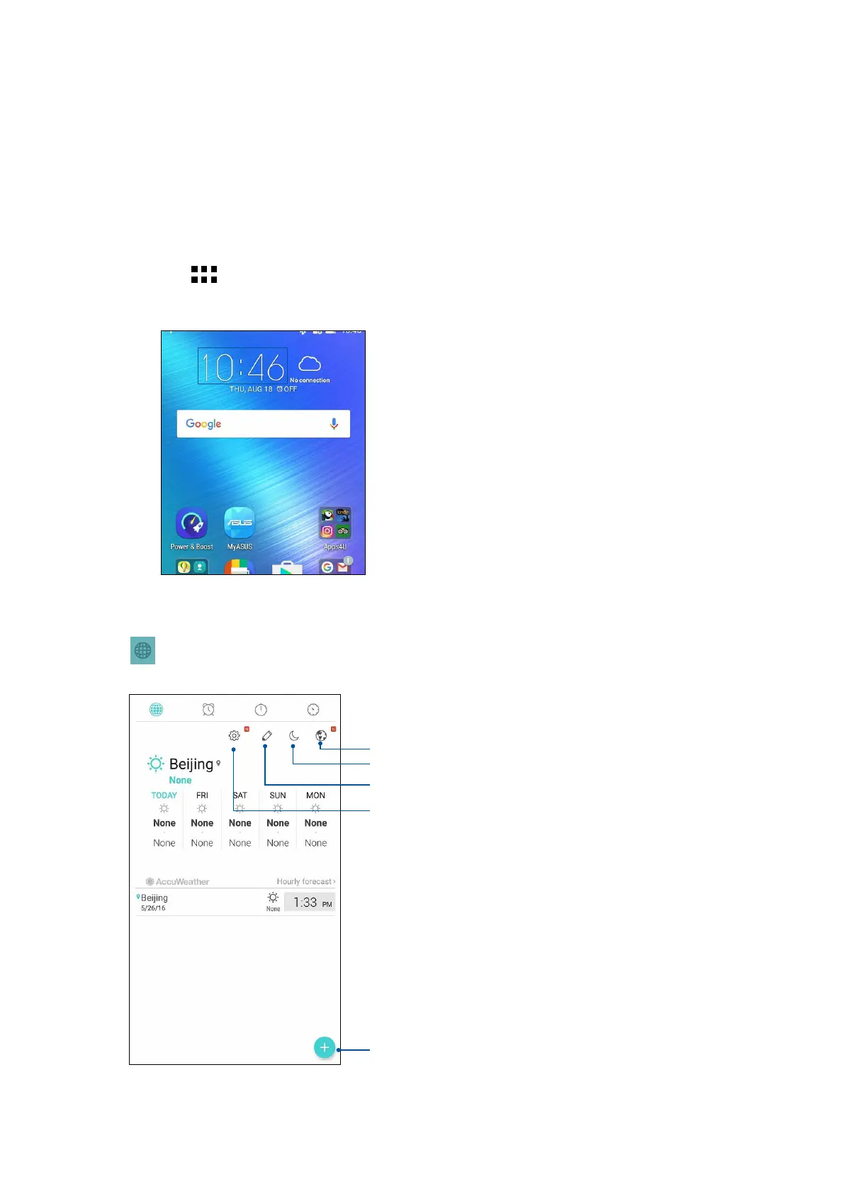Customize the time zone settings of your ASUS Phone, set alarms, and use your ASUS Phone as a