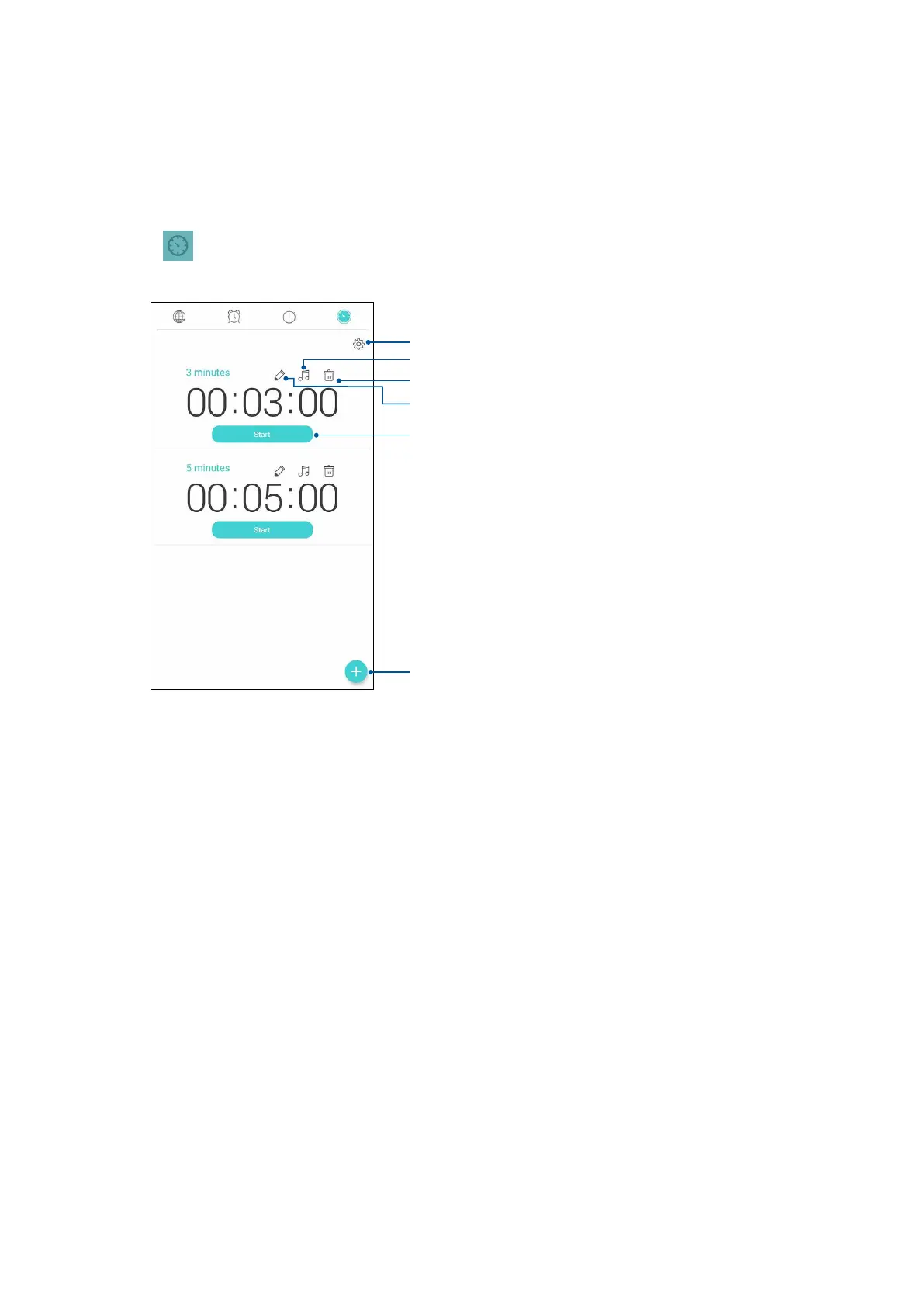 1. Tap to access the timer feature of your ASUS Phone.