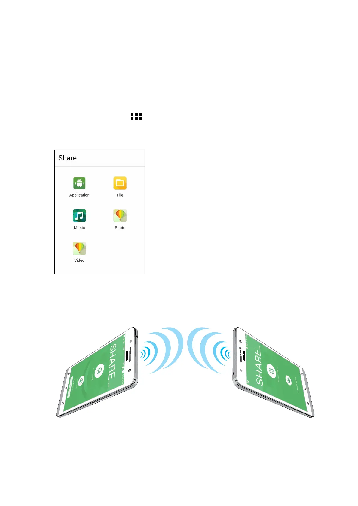 (for ASUS mobile devices) or SHAREit app (for other mobile devices) via a Wi-Fi hotspot. With this