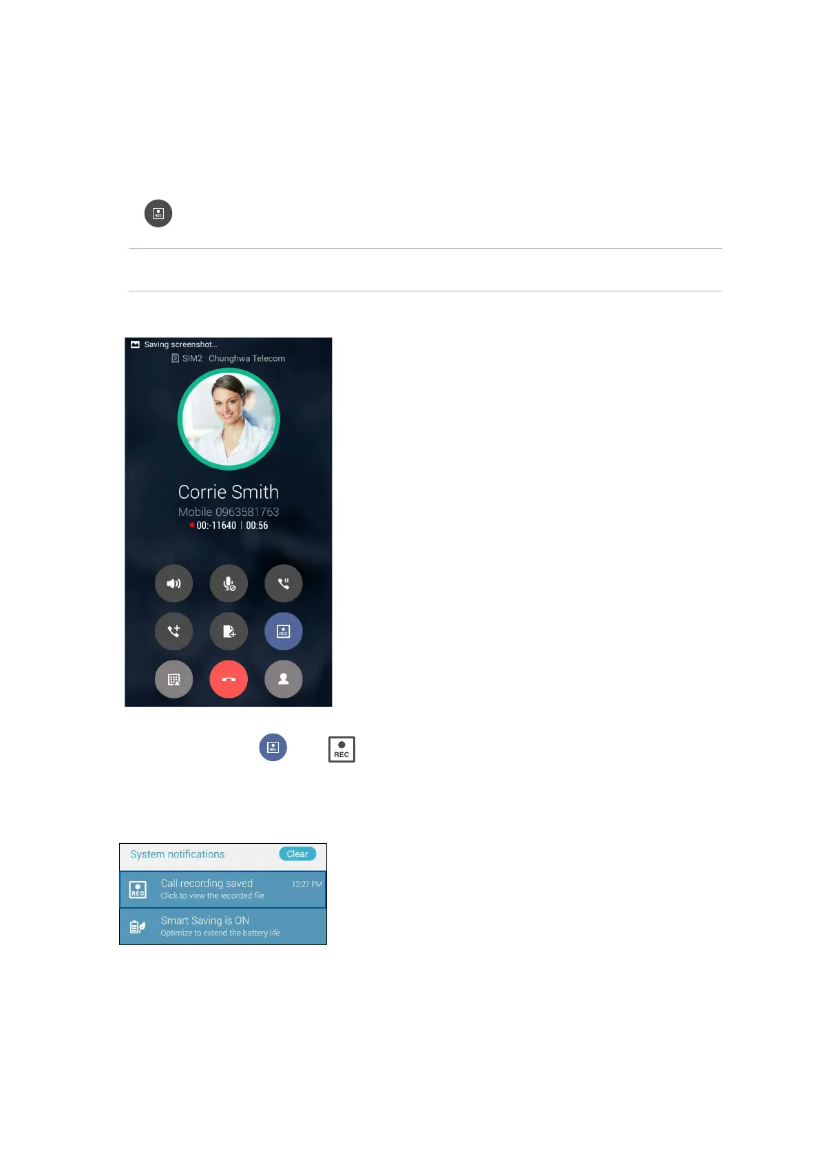 4. Swipe down the upper left corner of the screen, then tap Call recording saved notification to