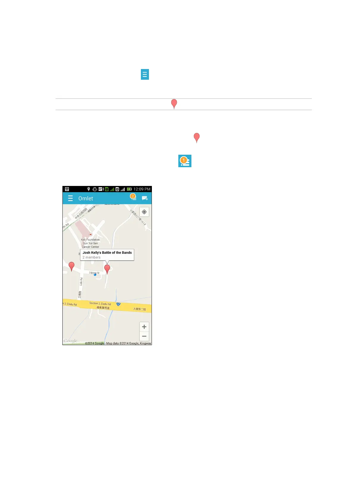 Omlet Chat launches the Google Maps app to your screen and shows the active social hotspots.