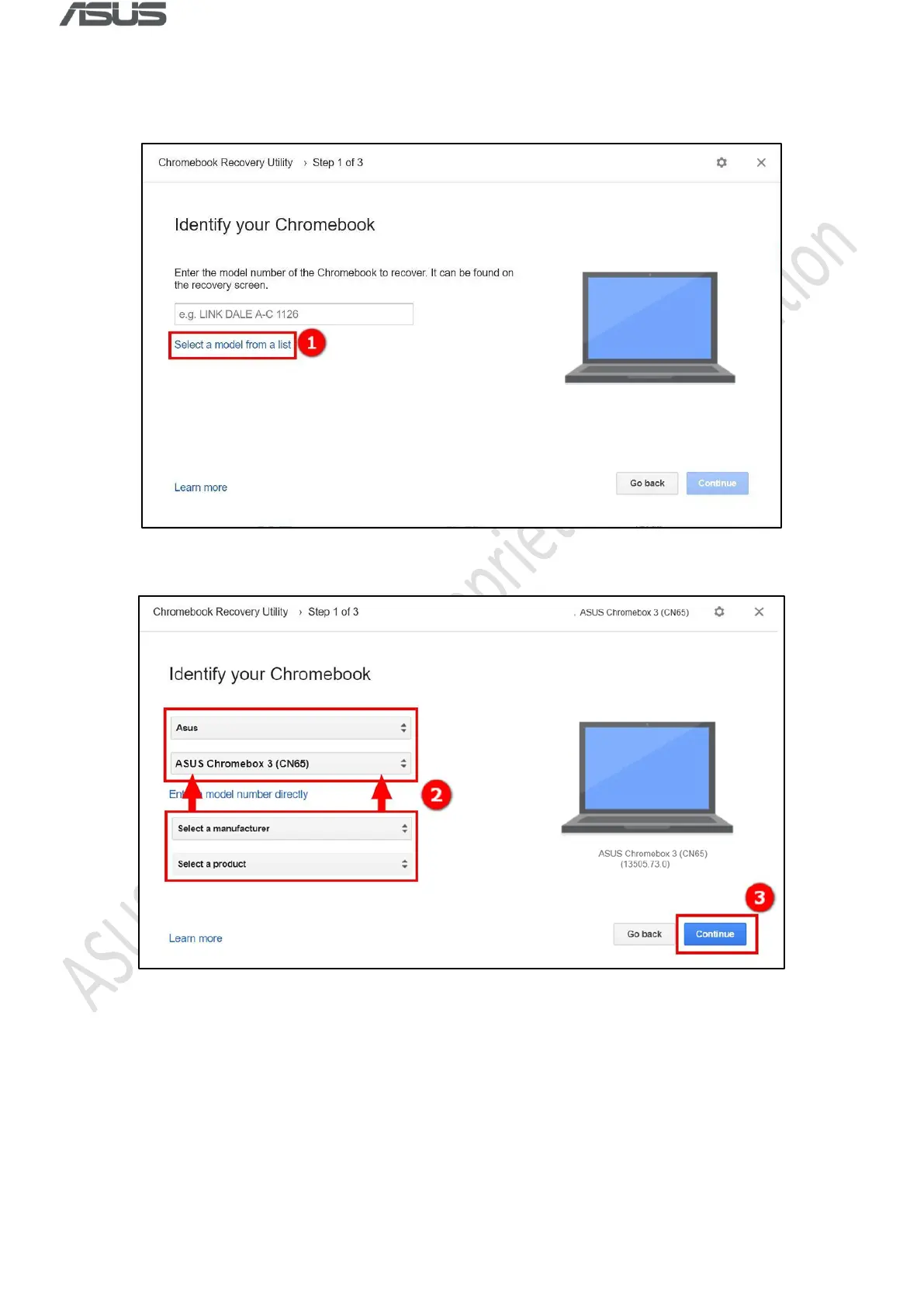 6) Click Select a model from a list, find The name of the Chromebook model you want